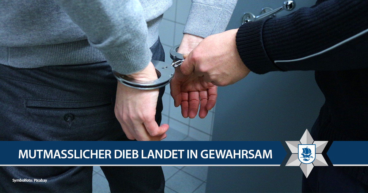 Auf frischer Tat ertappt haben Polizeibeamte in der Nacht zum heutigen Mittwoch, 3. Dezember, einen mutmaßlichen Dieb in Bremerhaven-Mitte. Er wurde in Gewahrsam genommen.