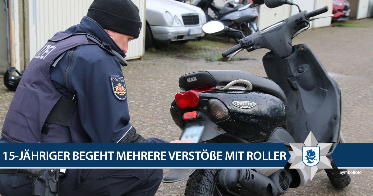 Gegen 16.40 Uhr befuhr der 15-Jährige gemeinsam mit seiner Beifahrerin auf einem Kleinkraftrad die Weichselstraße in Richtung Rickmersstraße. Bei einer Kontrolle im Kreuzungsbereich zur Stormstraße stellten die Polizisten mehrere Verstöße fest: Der Jugendliche konnte keine gültige Fahrerlaubnis vorweisen. Zudem war für das Zweirad kein Versicherungsschutz vorhanden: An dem Zweirad waren alte, nicht mehr gültige Jahreskennzeichen montiert. Diese wiederum waren mit der aktuell gültigen Farbe übermalt worden.
