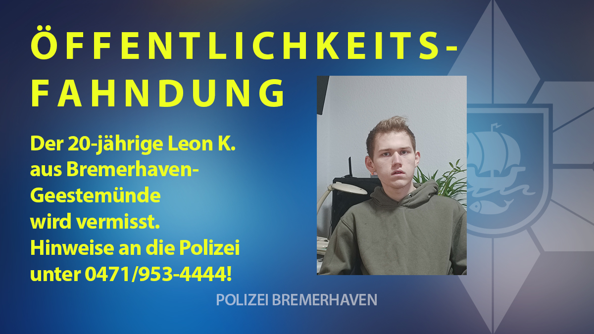 Wer Hinweise zum Aufenthaltsort von Leon K. geben kann, wird gebeten, die Polizei Bremerhaven unter 0471/953-4444 oder jede andere Polizeidienststelle zu kontaktieren.