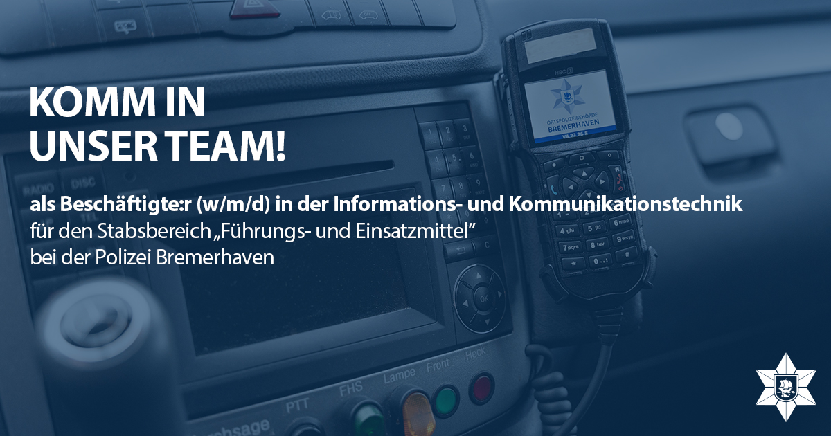 Die Polizei Bremerhaven sucht zum nächstmöglichen Zeitpunkt für den Stabsbereich „Führungs- und Einsatzmittel“