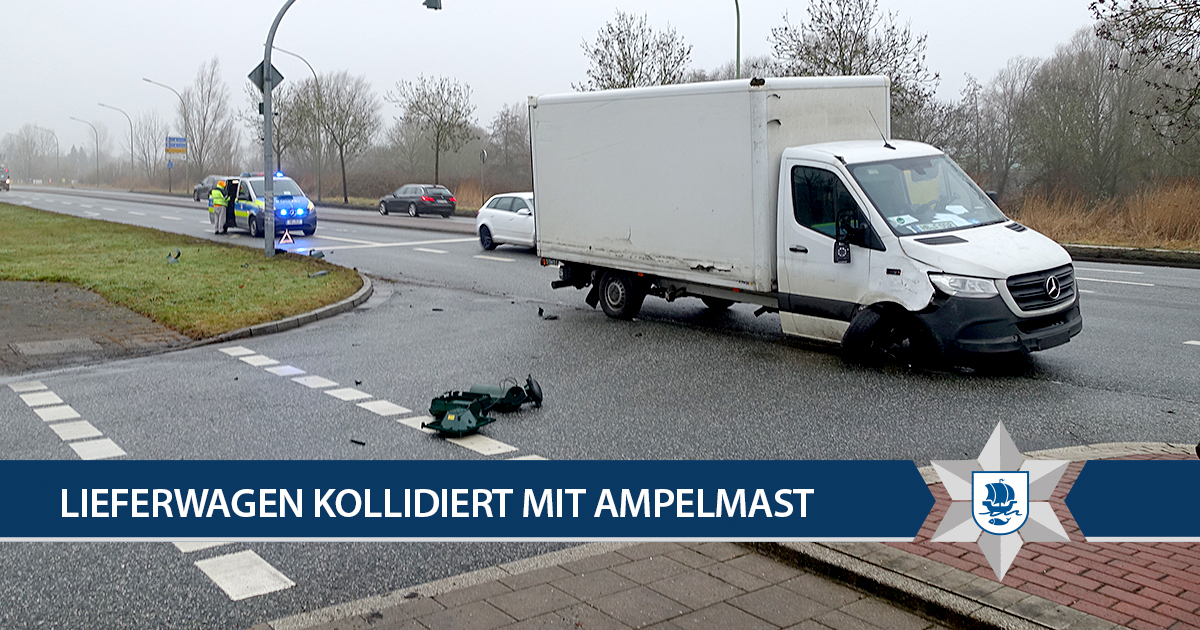 Nicht mehr fahrbereit war der Lieferwagen eines 35-Jährigen, der am Mittwoch, 11. Februar, in Bremerhaven-Wulsdorf mit einem Ampelmast kollidierte.