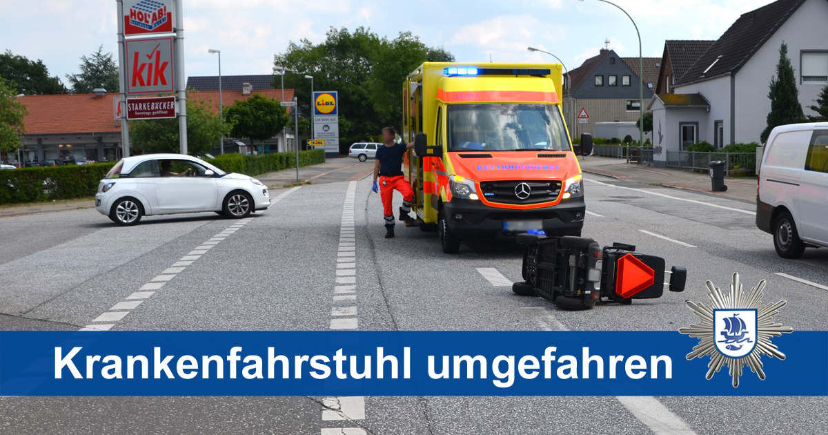 Dabei achtete die 57-Jährige nicht ausreichend auf einen Krankenfahrstuhl-Fahrer, der hier die Fahrbahn im Einmündungsbereich überquerte. Es kam zu einer Kollision und der Elektro-Krankenfahrstuhl kippte um.